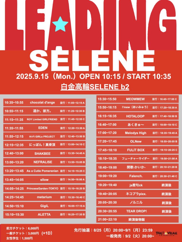 2025/9/15(月・祝)に開催いたします。LEADING SELENEの詳細をお知らせいたします。