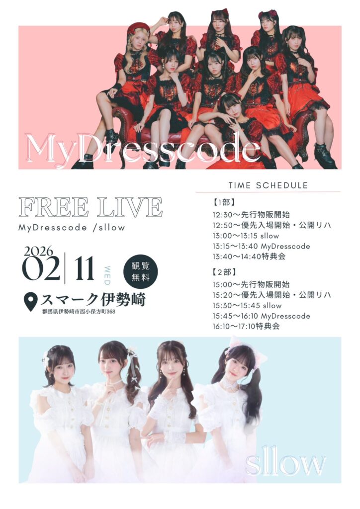 2026/2/11(水)に開催いたします、 sllow FREE LIVE 出演についての詳細をお知らせいたします。