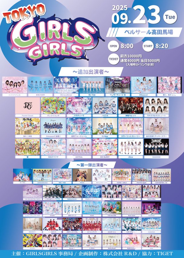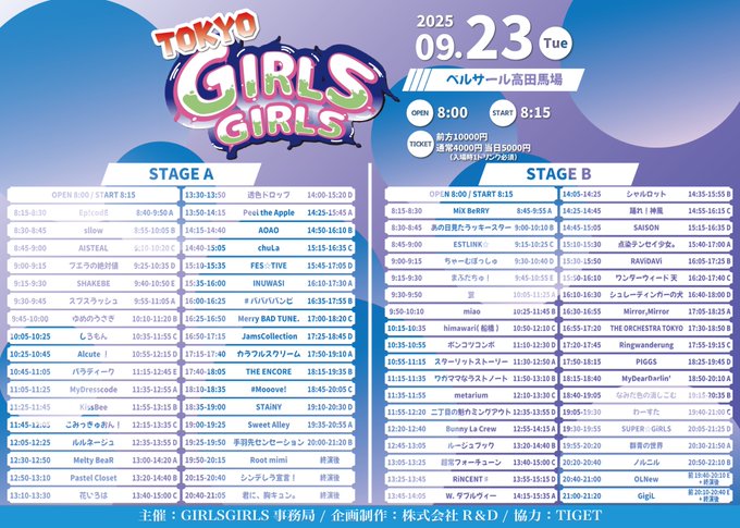 2025/9/23(火・祝)に開催いたします。TOKYO GIRLS GIRLSの詳細をお知らせいたします。