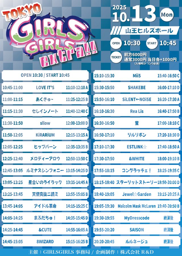 2025/10/13(月祝)に開催いたします。TOKYO GIRLS GIRLS extra!!出演の詳細をお知らせいたします。