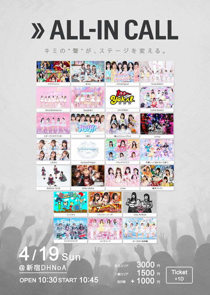 2026/4/19(日)に開催いたします。ALL-IN CALL vol.5 出演の詳細をお知らせいたします。