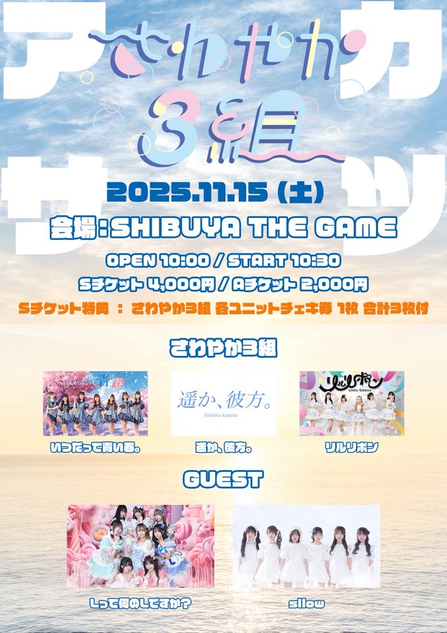 2025/11/15(土) さわやか3組 主催 ア サ カ ツ出演についてのお知らせ