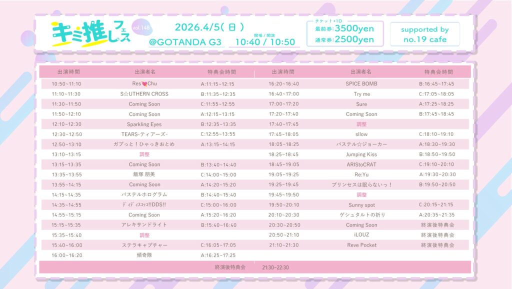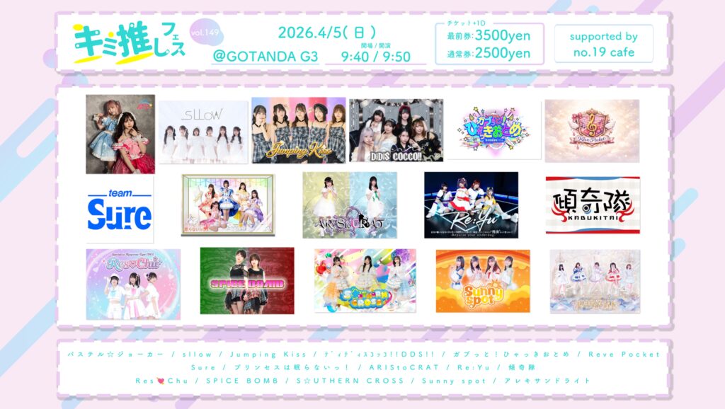 2026/4/5(日)に開催いたします、キミ推しフェス vol.149 パステル☆ジョーカー 本都なる超爆誕祭 出演についての詳細をお知らせいたします。