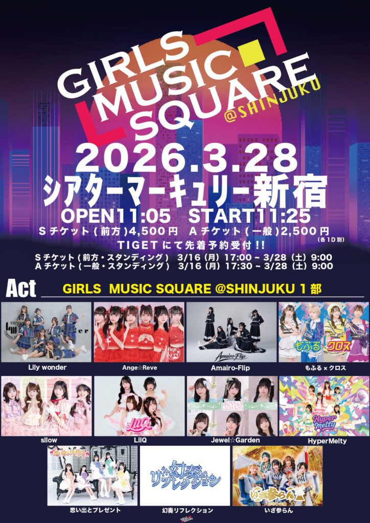 2026/3/28(土)に開催いたします、GIRLS MUSIC SQUARE 出演についての詳細をお知らせいたします。