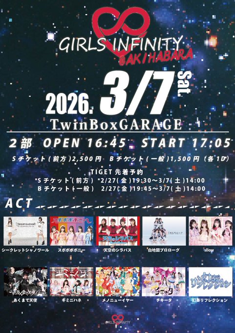 2026/2/21(火)に開催いたします、GIRLS INFINITY Saturday @AKIHABARA 出演についての詳細をお知らせいたします。
