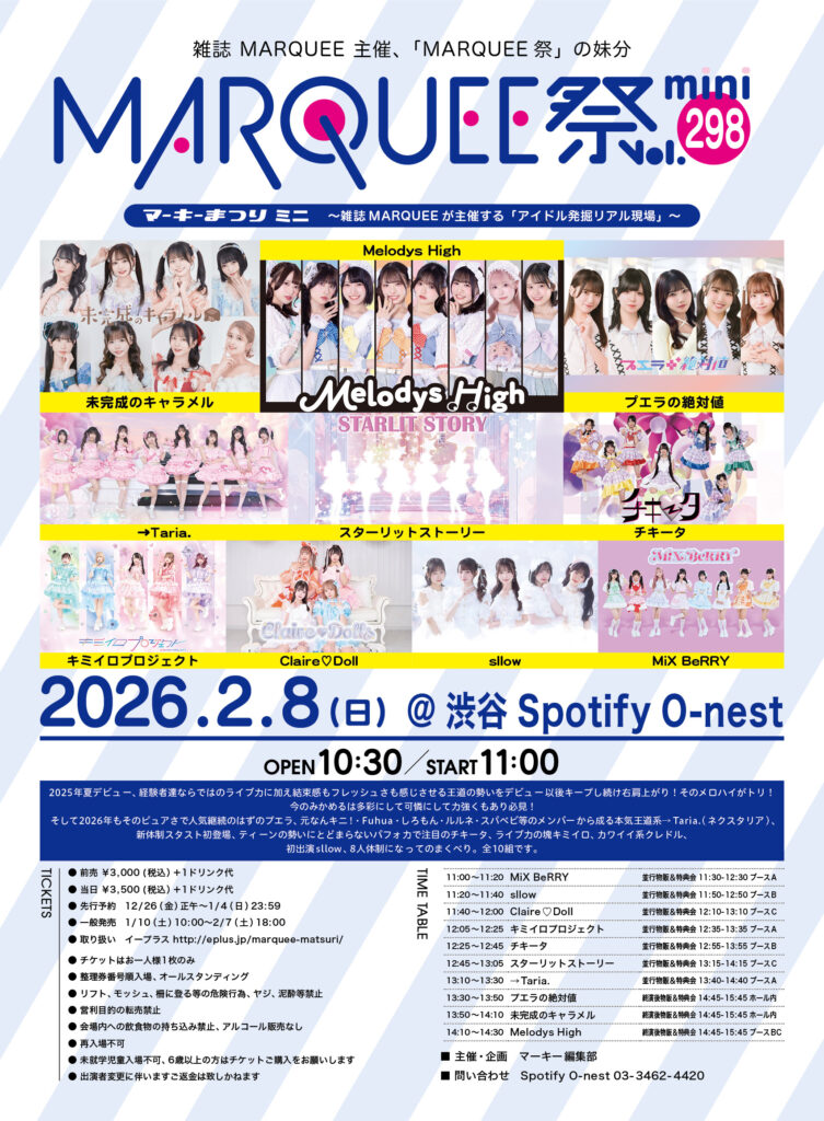 2026/2/8(土)に開催いたします、MARQUEE祭mini Vol.298出演についての詳細をお知らせいたします。